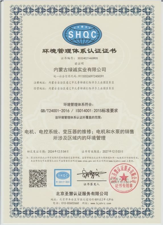 內蒙古緑誠實業有限公司于2014年4月成立,公司地址位于扎魯特旗扎哈淖爾工業園區東區。現有辦公樓2700平方米,新型專業化生產維修車間5500平方米,我公司是與中國中車集團的襄陽中車電機技術有限公司技術合作成為現代化大型機電設備檢修公司及維修為一體的公司,贏得了各個企業的支持與信賴。